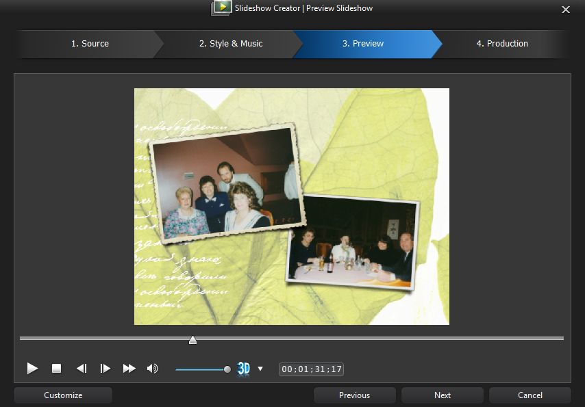 After picking a style, you preview your slideshow. If you don’t like it, you can go back and change the style.